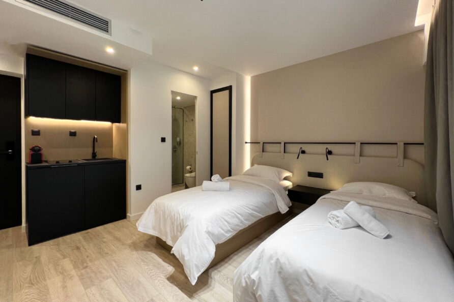 Twin Rooms come with 2 single beds. Designed in open-concept living area, they have lots of in-room facilities.